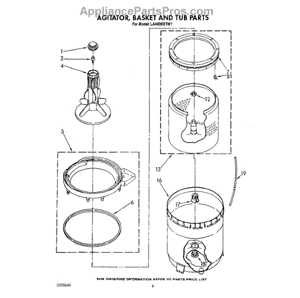 Parts for Whirlpool LA4800XTG1: 05 - Agitator, Basket And Tub Parts