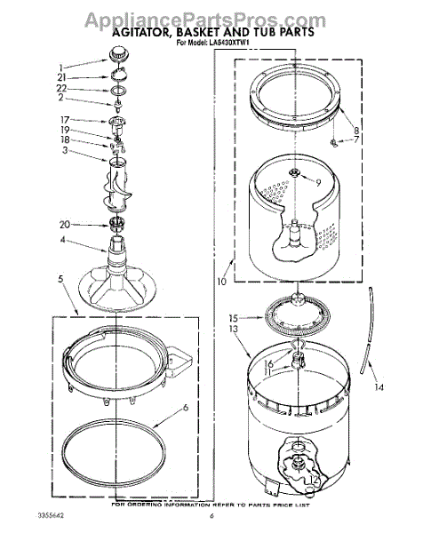 Parts for Whirlpool LA5430XTF1: 05 - Agitator, Basket And Tub Parts