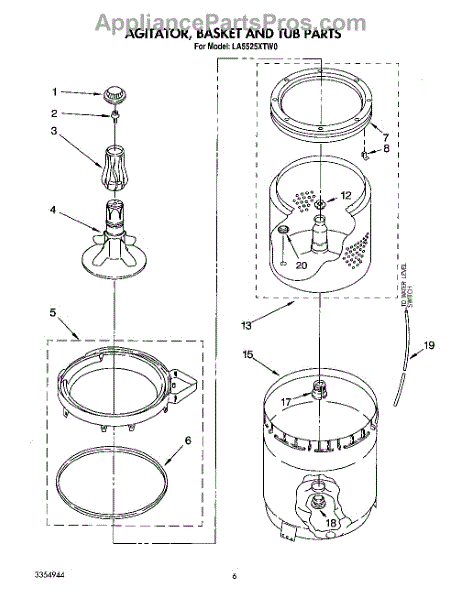 Parts for Whirlpool LA5525XTW0: 05 - Agitator, Basket And Tub Parts