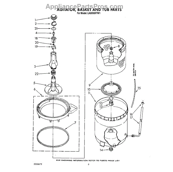 Parts for Whirlpool LA5558XTF1: 05 - Agitator, Basket And Tub Parts
