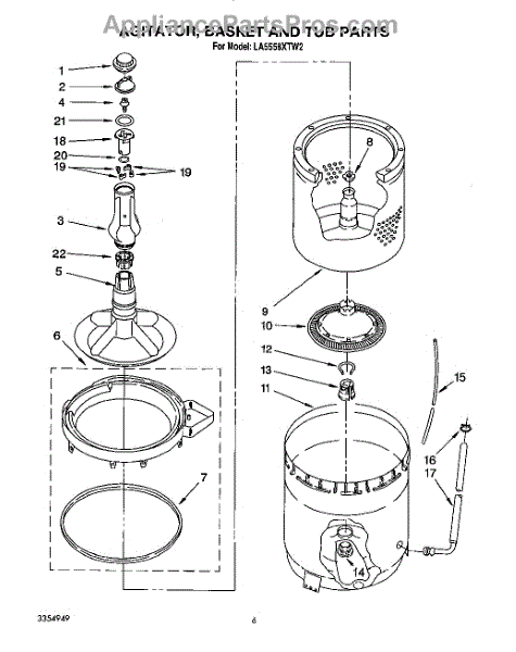 Parts for Whirlpool LA5558XTN2: 05 - Agitator, Basket And Tub Parts