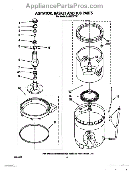 Parts for Whirlpool LA5600XTM1: 05 - Agitator, Basket And Tub Parts