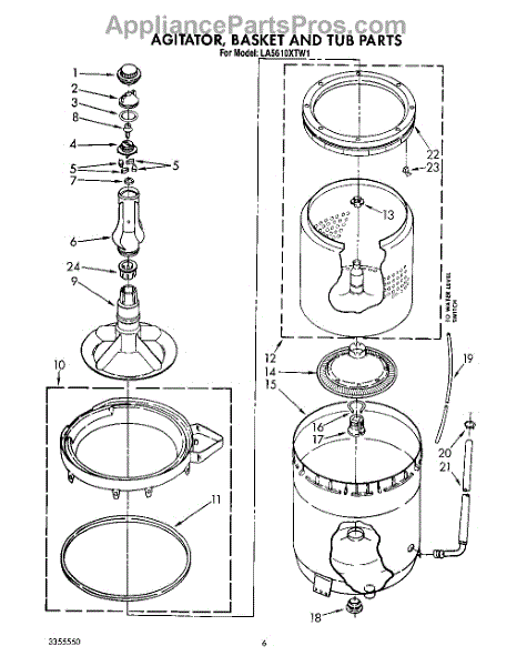 Parts for Whirlpool LA5610XTN1: 05 - Agitator, Basket And Tub Parts