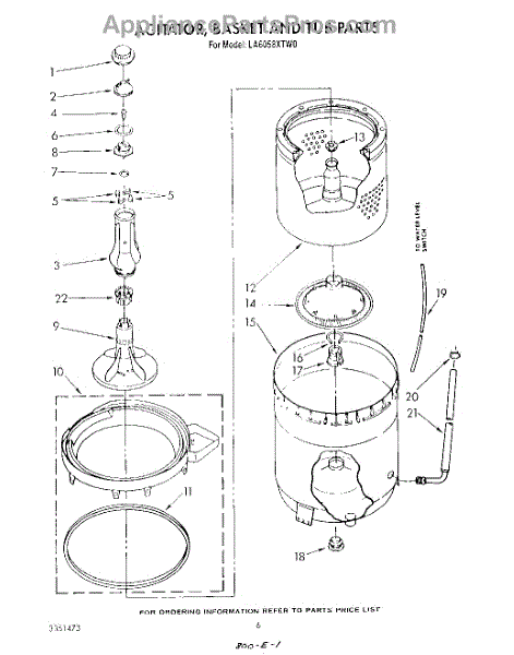 Parts for Whirlpool LA6058XTN0: 05 - Agitator, Basket And Tub Parts
