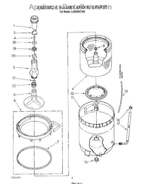 Parts for Whirlpool LA6090XTF0: 05 - Agitator, Basket And Tub Parts