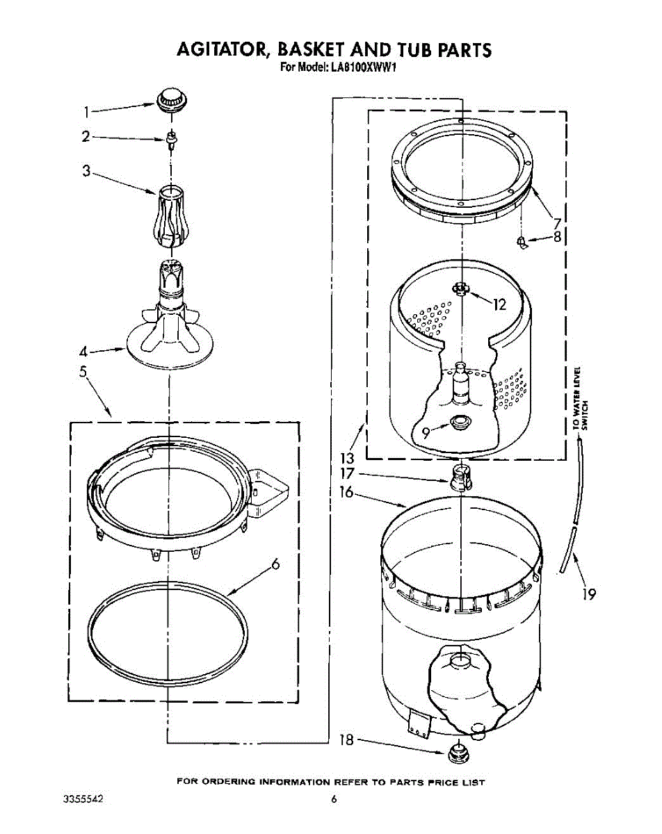 Parts for Whirlpool LA8100XWW1: 05 - Agitator, Basket And Tub Parts
