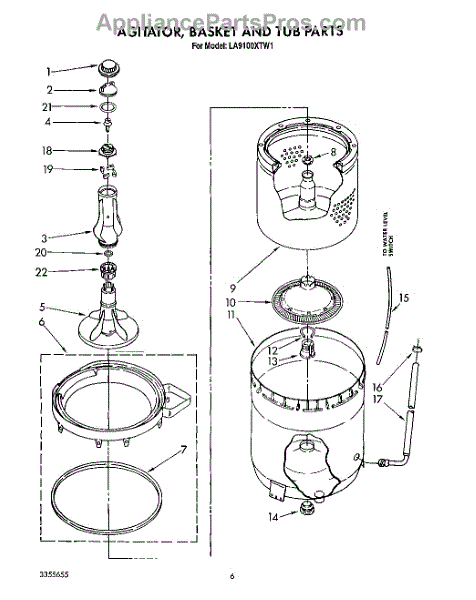 Parts for Whirlpool LA9100XTN1: 05 - Agitator, Basket And Tub Parts
