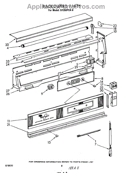 Parts for Whirlpool SF350PEK0: 05 - Backguard Parts
