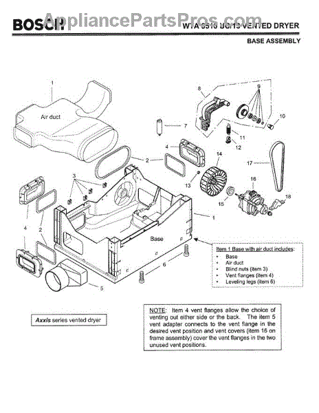 This Vent Adapter is an OEM part for Bosch Dryers. It plays a role in connecting the dryer exhaust to the vent hose, ensuring efficient airflow and proper ventilation. Over time, wear and tear or improper installation can lead to issues with this component.