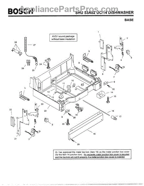 Causes of a failed screw can include wear and deterioration from constant vibrations during cycles, or physical damage if the toe kick panel is impacted.