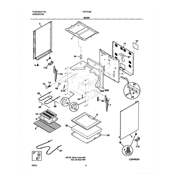 Fiberglass insulation panel that installs behind the oven cavity. Replaces missing, damaged, or rodent-chewed insulation to restore heat containment.