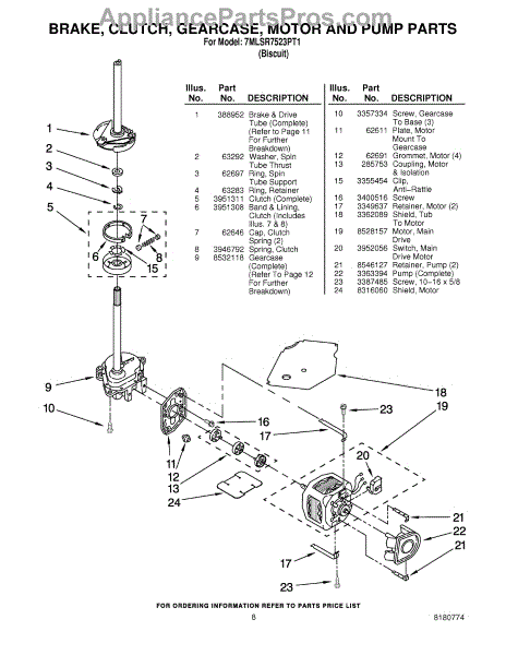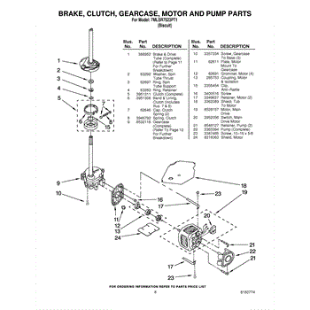 Parts for Whirlpool 7MLSR7523PT1: 05 - Brake, Clutch, Gearcase, Motor And Pump Parts