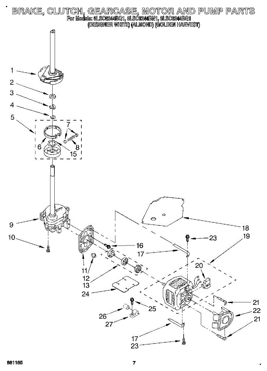 Parts for Whirlpool 8LSC6244BQ1: 05 - Brake, Clutch, Gearcase, Motor & Pump Parts
