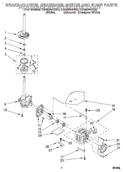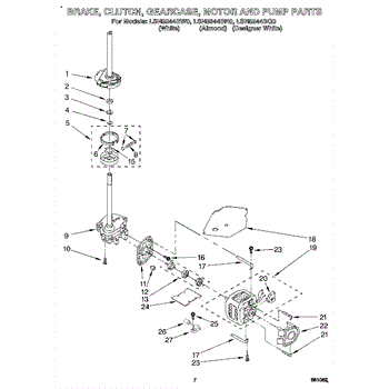 Parts for Whirlpool LSN8244BN0: 05 - Brake, Clutch, Gearcase, Motor & Pump Parts