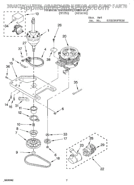 Parts for Whirlpool RAM5243AW2: 05 - Brake, Clutch, Gearcase, Motor & Pump Parts