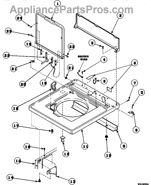 Parts for Amana CW8202W2 / PCW8202W2: 05 - Cab Top / Loading Dr & Ctrl Hood Rear Pan Parts