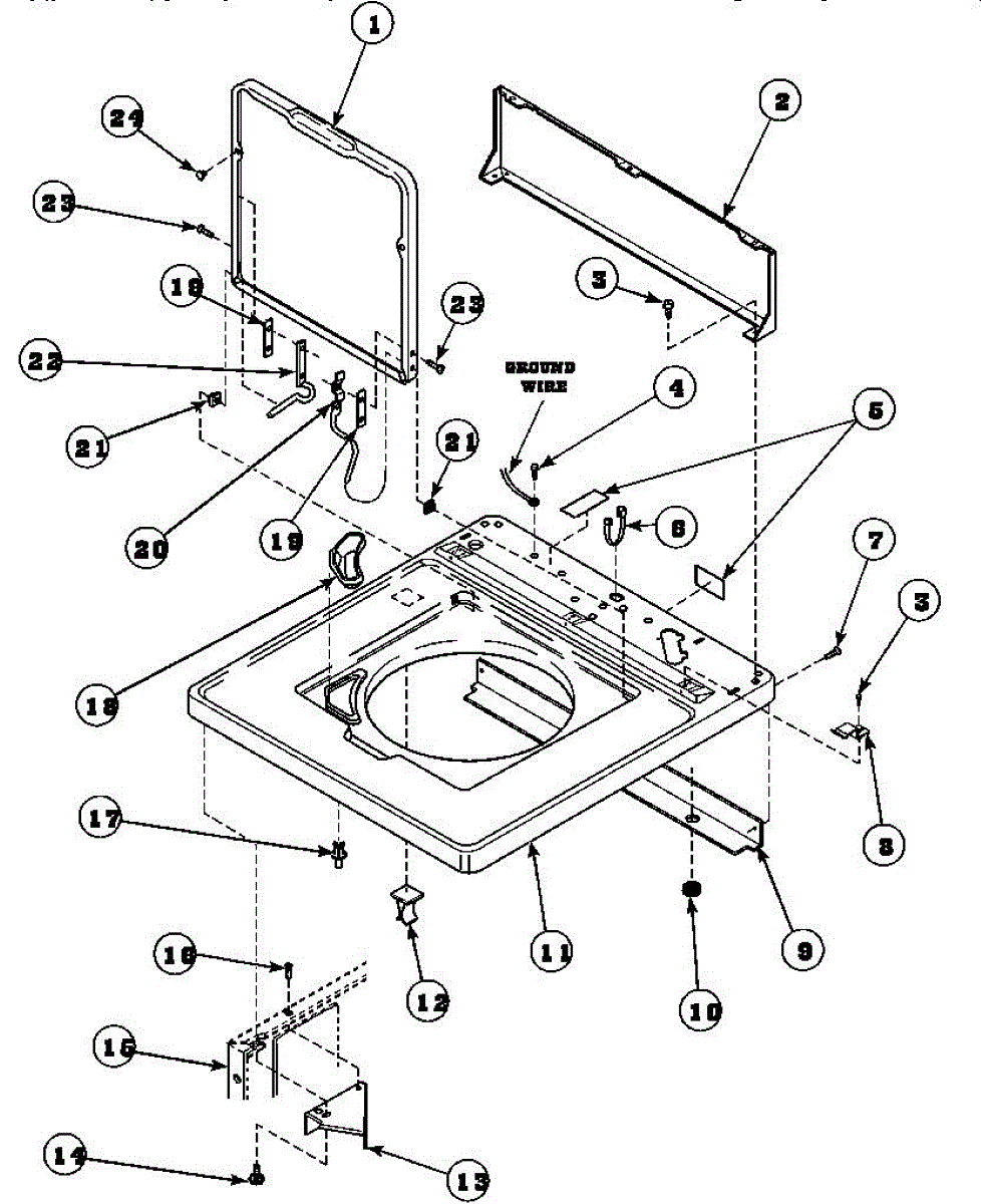 Parts for Amana CW9203W2 / PCW9203W2 B: 05 - Cab Top / Loading Dr & Ctrl Hood Rear Pan Parts