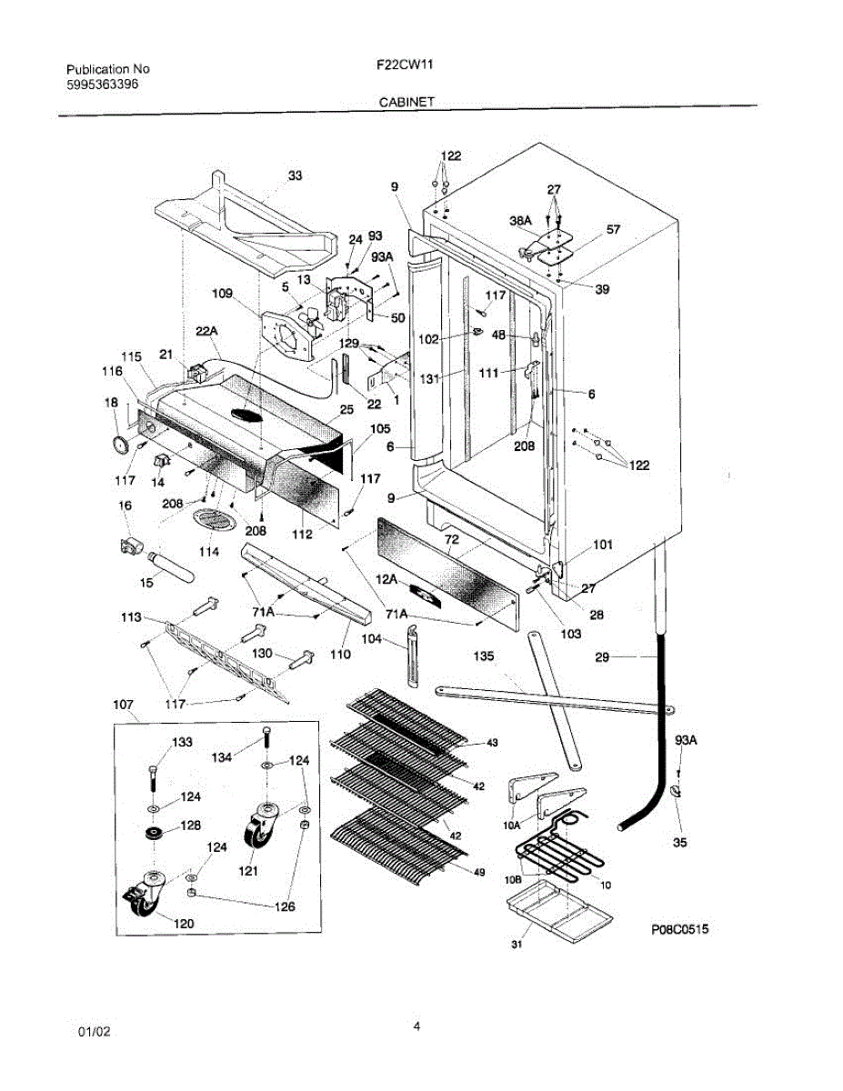 Foam insulation sleeve that wraps around the defrost drain tube. Replace if worn, missing, or damaged to prevent condensation and maintain proper insulation.