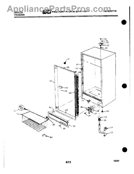 This is an authentic OEM freezer basket bumper sourced directly from the manufacturer for use on freezer baskets. Freezer basket bumpers are attached to the baskets to keep them from sliding around inside the freezer. If the bumper breaks, the basket will not stay in place, and the contents could shift or fall out. Freezer baskets create more storage room inside a freezer. These baskets are normally located on the bottom of the freezer, with freezer racks located above. Freezer baskets are ideal for storing smaller packages that might not stack well on the racks. Over time, normal wear and tear may cause the bumper to crack or break completely; if this happens, the bumper should be replaced. Remove the contents of the freezer basket. Remove the freezer basket from the freezer. Push the new bumper onto the freezer basket. Replace the contents of the basket and put it back into the freezer. This handle freezer basket is made of high-quality, white molded plastic. It is designed for use in freezers manufactured by Frigidaire, Kenmore, Gibson, and Electrolux.