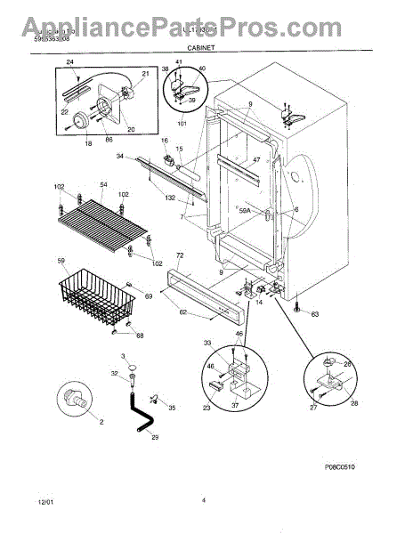 The Door switch is an OEM replacement part for Frigidaire refrigerators. This part turns the light on/off as the door opens and closes. Causes of a faulty door switch include normal wear of electrical contacts from repetitive on/off cycles. Moisture exposure may potentially corrode internal connections. Symptoms of a bad light/switch include: