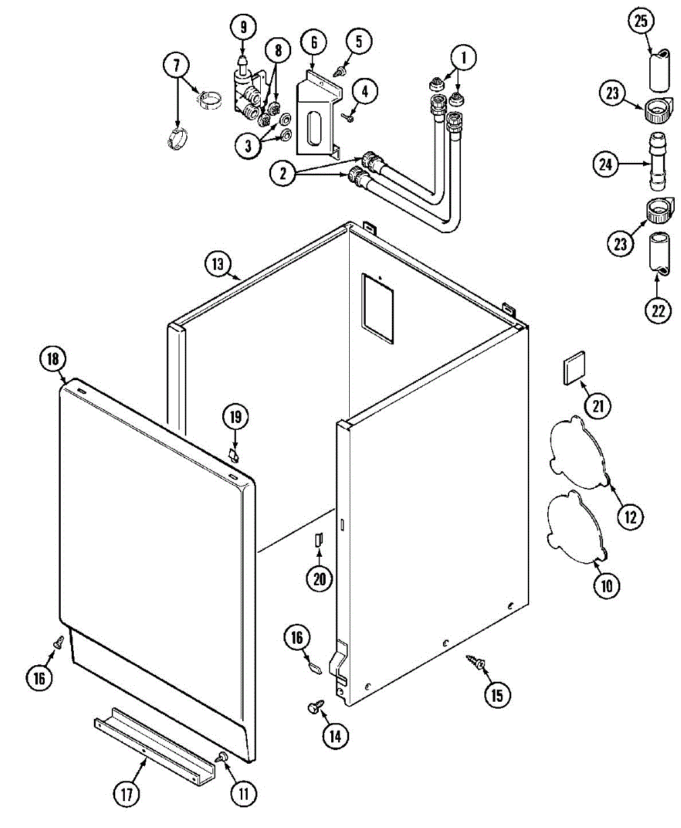 Hose washer and plastic insert for inlet hose. To order separately: for washer use WPY013783, for strainer use WP22002960.