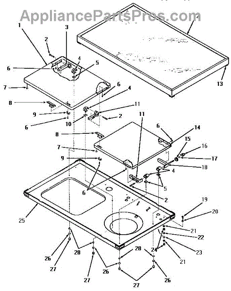 Parts for Amana DH1140: 05 - Cabinet Top And Loading Doors Parts