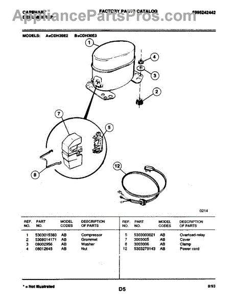 Parts for Frigidaire CDH30E3: 05 - Compressor Parts