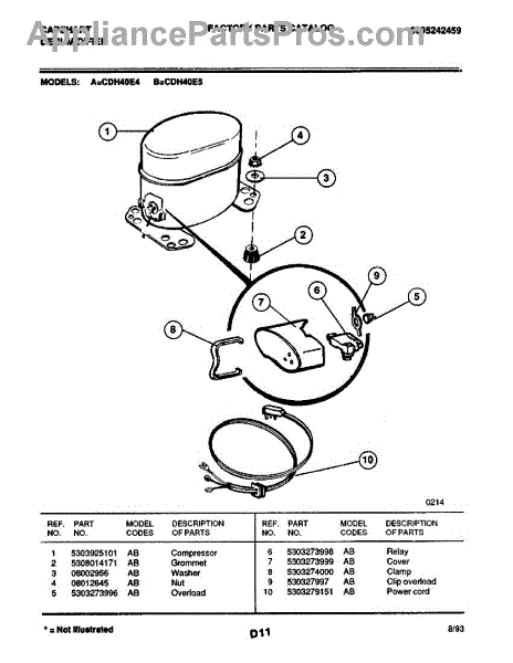 Parts for Frigidaire CDH40E4: 05 - Compressor Parts