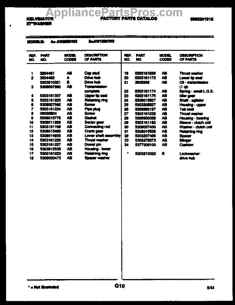 Parts for Frigidaire AW100KW2: 05 - Console And Control Parts