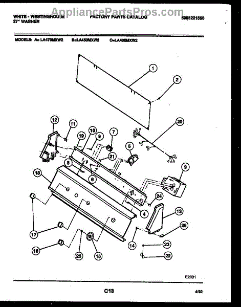 Parts for Frigidaire LA400MXD2: 05 - Console And Control Parts