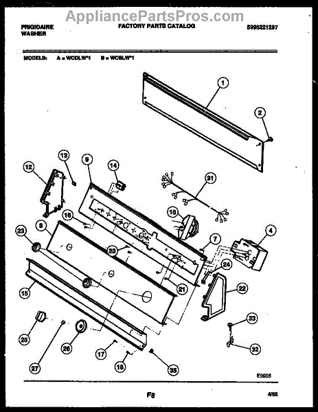 Parts for Frigidaire WCDLL1: 05 - Console And Control Parts