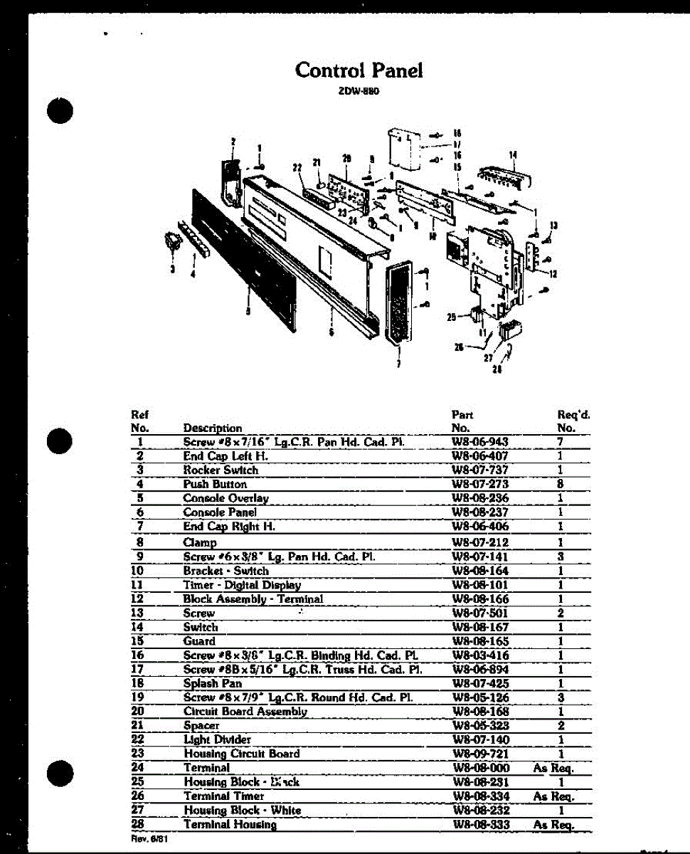 Parts for Amana ZDW-880: 05 - Control Panel Parts