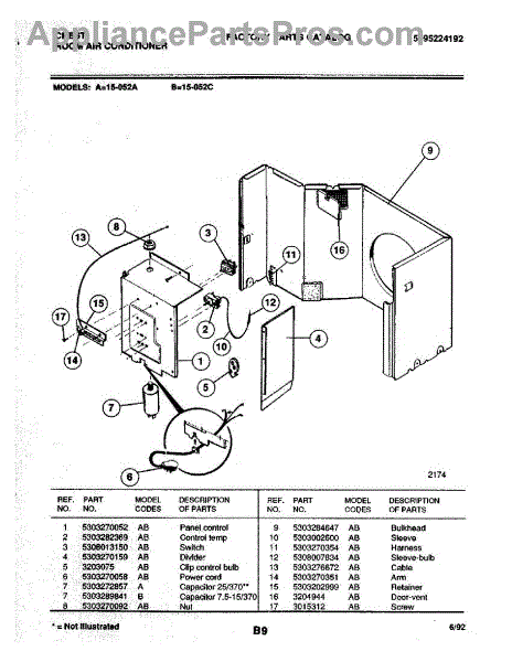 Parts for Frigidaire 15-052A: 05 - Control Panel Parts