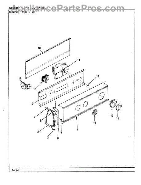 Parts for Magic Chef W20HY2C: 05 - Control Panel (Rev. H-M) Parts