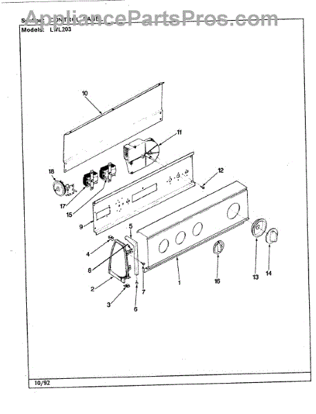 Parts for Norge LWL203W: 05 - Control Panel (Rev. K-P) Parts