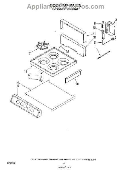 Parts for Whirlpool SF0100EKW2: 05 - Cook Top Parts