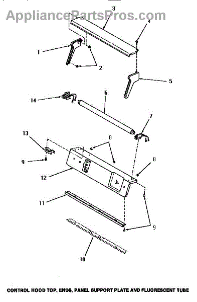 Parts for Amana HE9270: 05 - Ctrl Hood Top, Ends, Panel Support Plate Parts