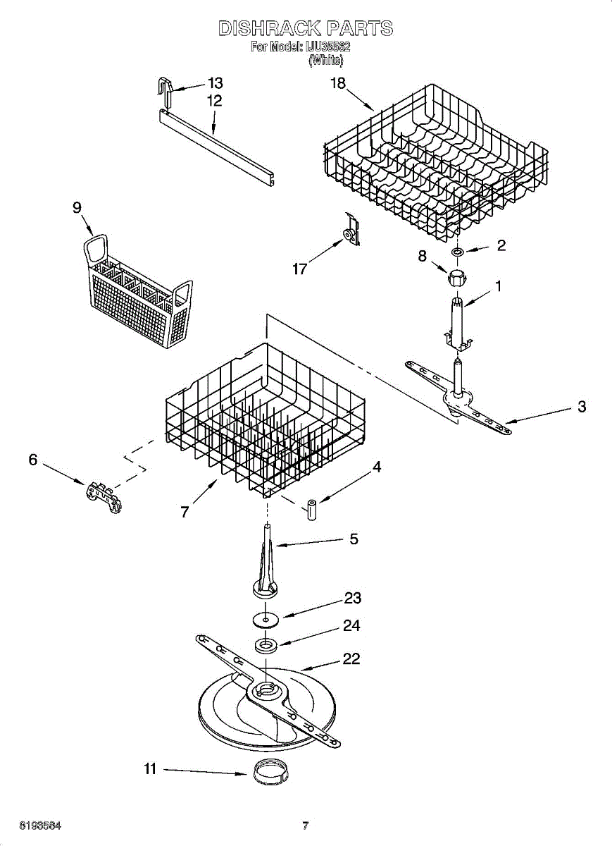 The Dishrack is an OEM replacement part for Whirlpool dishwashers. It measures 21" wide x 21" deep. It provides a stable framework for organizing and holding dishes, glasses, utensils, and other items during the washing cycle. Designed to fit securely in the dishwasher, it ensures proper water flow and cleaning efficiency for all loaded items.