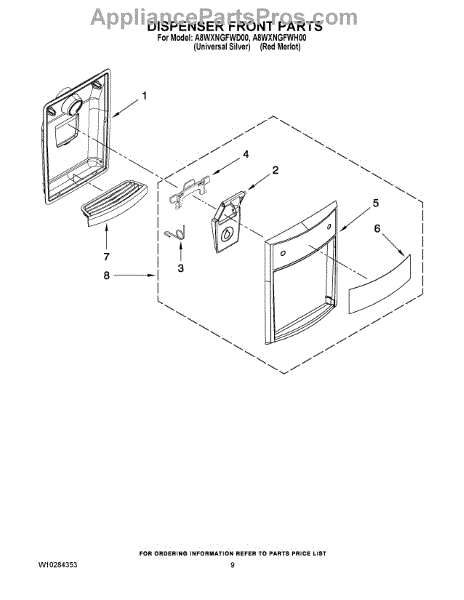 Parts for Maytag A8WXNGFWH00: 05 - Dispenser Front Parts