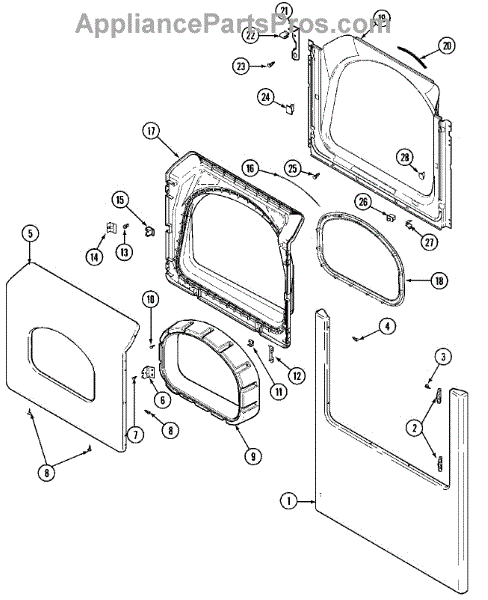This door seal fits around the dryer door opening to keep heat and moisture inside the drum. Replacing a worn seal restores airflow, improves drying performance, and helps prevent lint and warm air from escaping around the door.