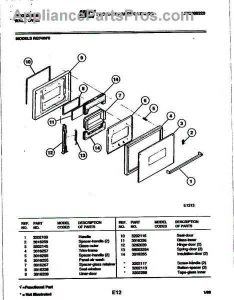 Parts for Frigidaire RG74BF0: 05 - Door Parts