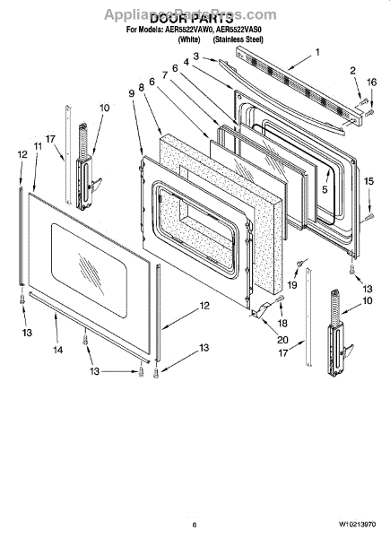 The Outer Door Glass is an OEM part for Whirlpool ranges. It serves as the exterior glass panel on the oven door, providing visibility into the oven while protecting the internal components and maintaining the oven’s aesthetic appeal. Causes of a bad outer door glass can include accidental impacts, thermal stress from frequent heating and cooling, or general wear and tear over time. Symptoms of a bad outer door glass include: