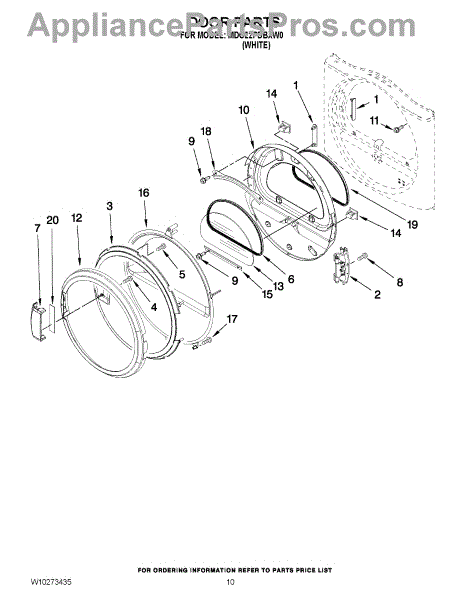 Complete door assembly for your dryer. Replaces cracked, damaged, or broken doors that no longer seal properly or have cosmetic damage. Includes hinge.