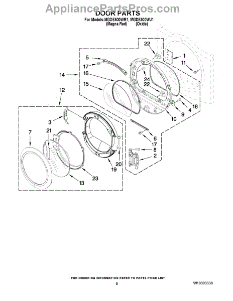 The Door Hinge is an OEM replacement part for Whirlpool dryers. Supporting the access door to the drum, the hinge provides smooth rotational movement during loading and unloading cycles. Causes relate to bearing degradation from constant friction, bent hinge plates from impacts over time, or stripped internal teeth losing synchronized motion. Symptoms of a faulty hinge can include: