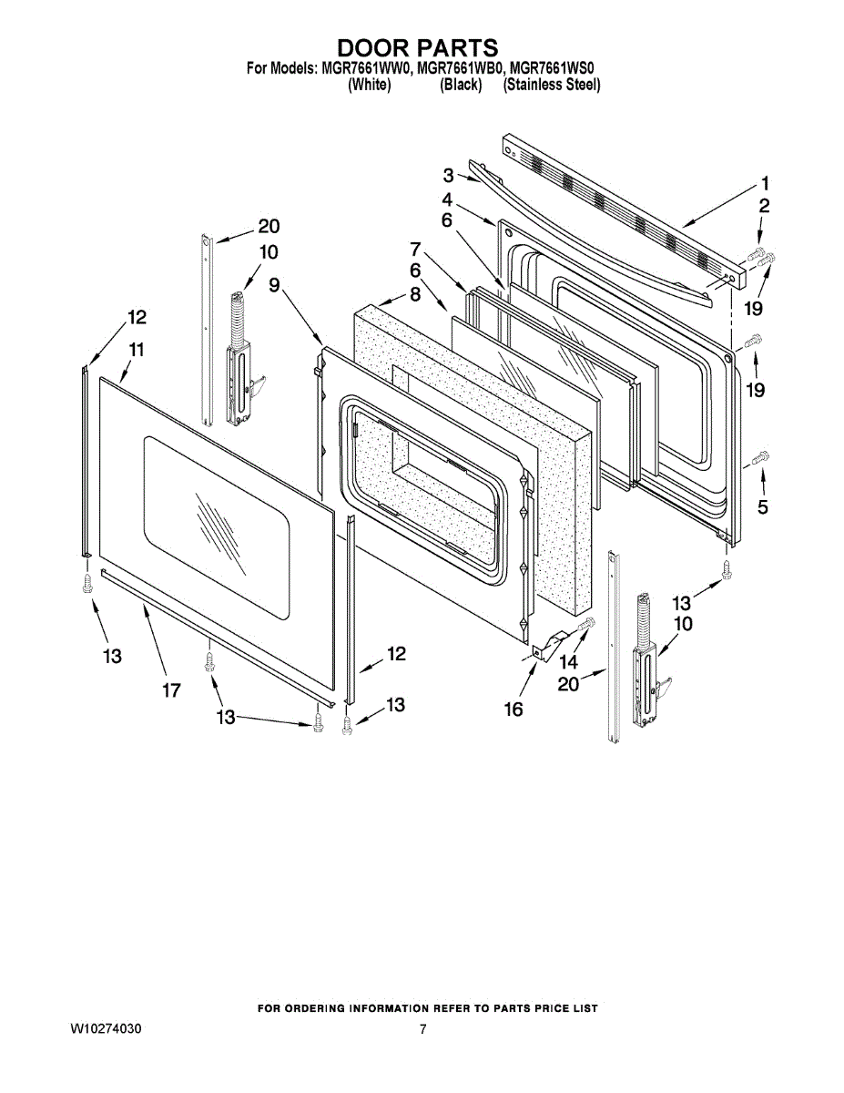 Parts for Maytag MGR7661WB0: 05 - Door Parts