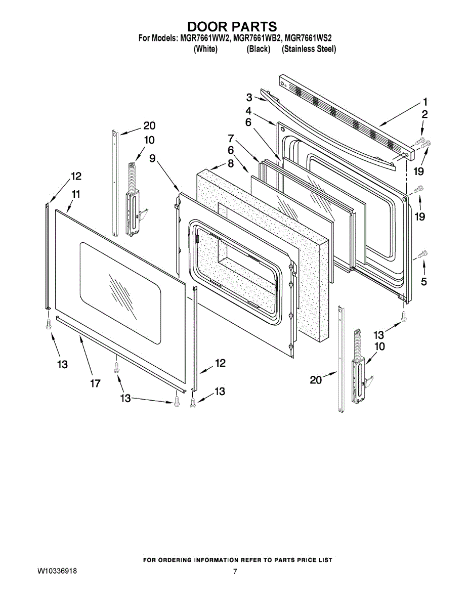 Parts for Maytag MGR7661WB2: 05 - Door Parts