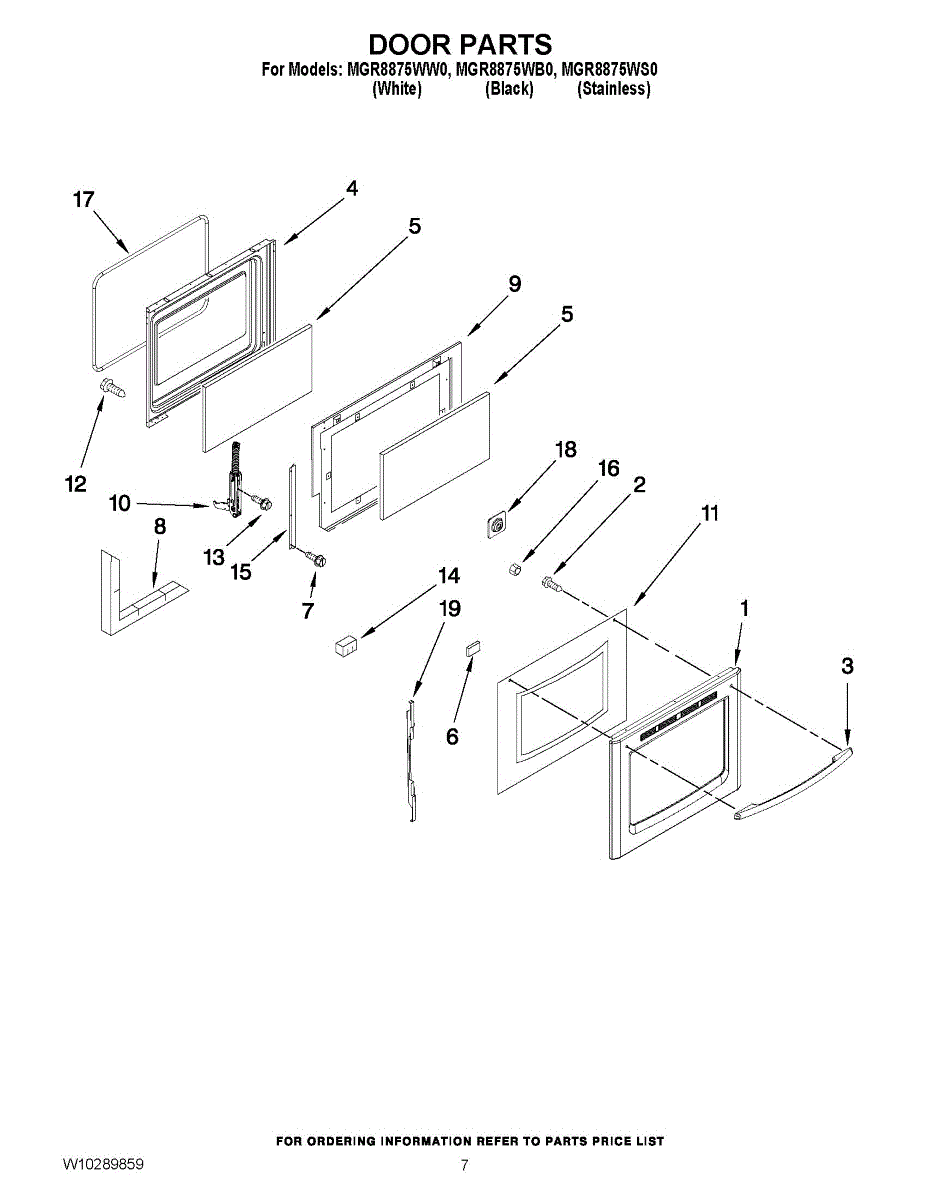 Parts for Maytag MGR8875WB0: 05 - Door Parts