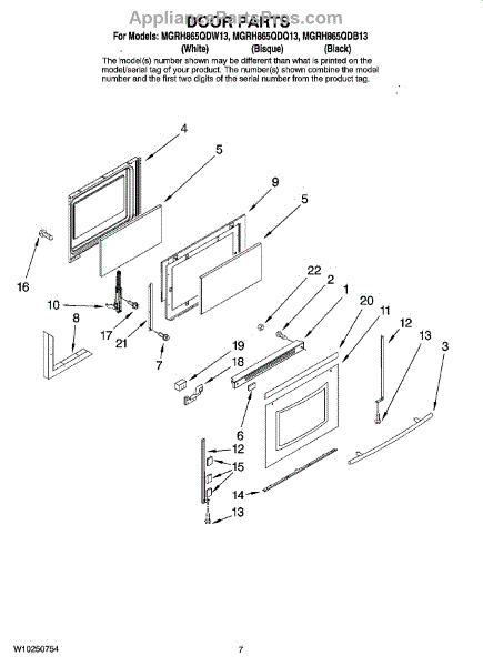 Parts for Maytag MGRH865QDB13: 05 - Door Parts