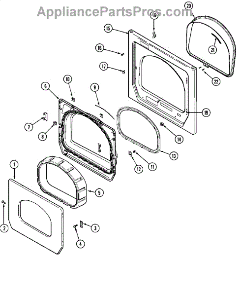 This door seal fits around the dryer door opening to keep heat and moisture inside the drum. Replacing a worn seal restores airflow, improves drying performance, and helps prevent lint and warm air from escaping around the door.