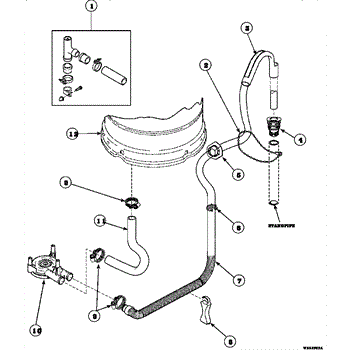 Secures washing machine hoses to prevent leaks in the water system. Replace if damaged, corroded, or connections are loose. Verify fit by part number.